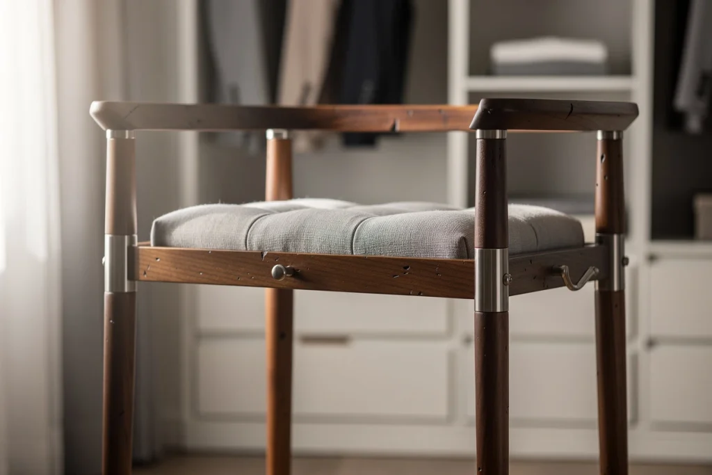 - La fonctionnalité : Certains valets proposent des options complémentaires comme un vide-poche, une barre à pantalons renforcée ou des petites étagères pour chaussures et accessoires.